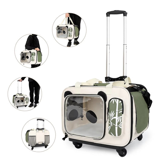 Foldable Pet Dog Cat Trolley Stroller with 4 Universal Wheels Animal Travel Shoulder Carrier House Suitcase for Small Pets